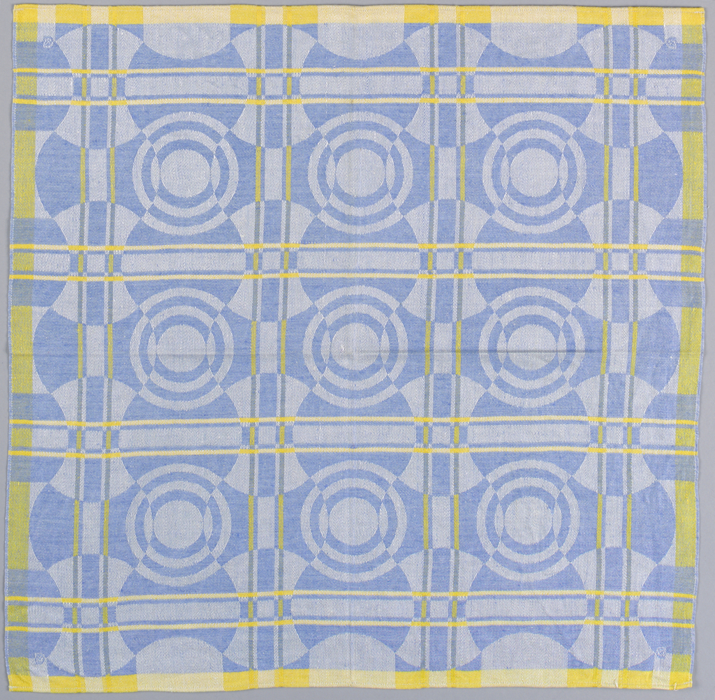 This is a Napkin. It was designed by Chris Lebeau and company: E.F.J. Van Dissel and Son. It is dated 1934 and we acquired it in 1994. Its medium is linen and its technique is damask. It is a part of the Textiles department.