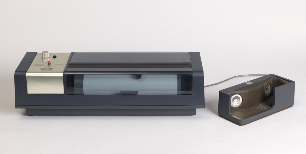 The Qwip 1200 revolutionized the facsimile business in the United States. Prior to the Qwip’s entry into the market, facsimile machines were similar in size to copy machines. This newly portable model typically sold on a monthly lease program to allow for future upgrades, and transmitted documents in a matter of minutes. The Qwip was advertised with the tag line “Qwip versus Zip” to emphasize the speed of facsimile over mail.