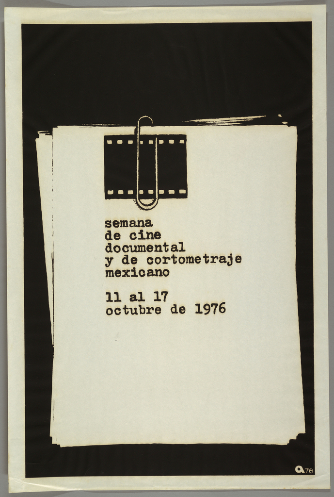 Poster, Semana de cine documental y de cortometraje mexicano (Week of Mexican Documentary Cinema and Short Film); Cuba; screenprint on wove paper; 75.9 x 50.2 cm (29 7/8 x 19 3/4 in.); Museum purchase from Smithsonian Institution Collections Acquisition Program Fund and through gift of Anonymous Donors; 1994-65-1