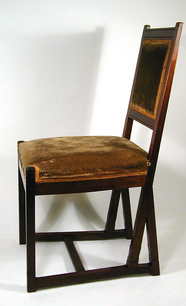 Chair (Netherlands); Designed by Hendrik Petrus Berlage (1856 – 1934); Produced by 't Binnenhuis, Amsterdam; mahogany, rosewood, ebony, upholstery; H x W x D: 89 x 41.3 x 53cm (35 1/16 x 16 1/4 x 20 7/8in.); Museum purchase from Decorative Arts Association Acquisition Fund; 1994-67-12
