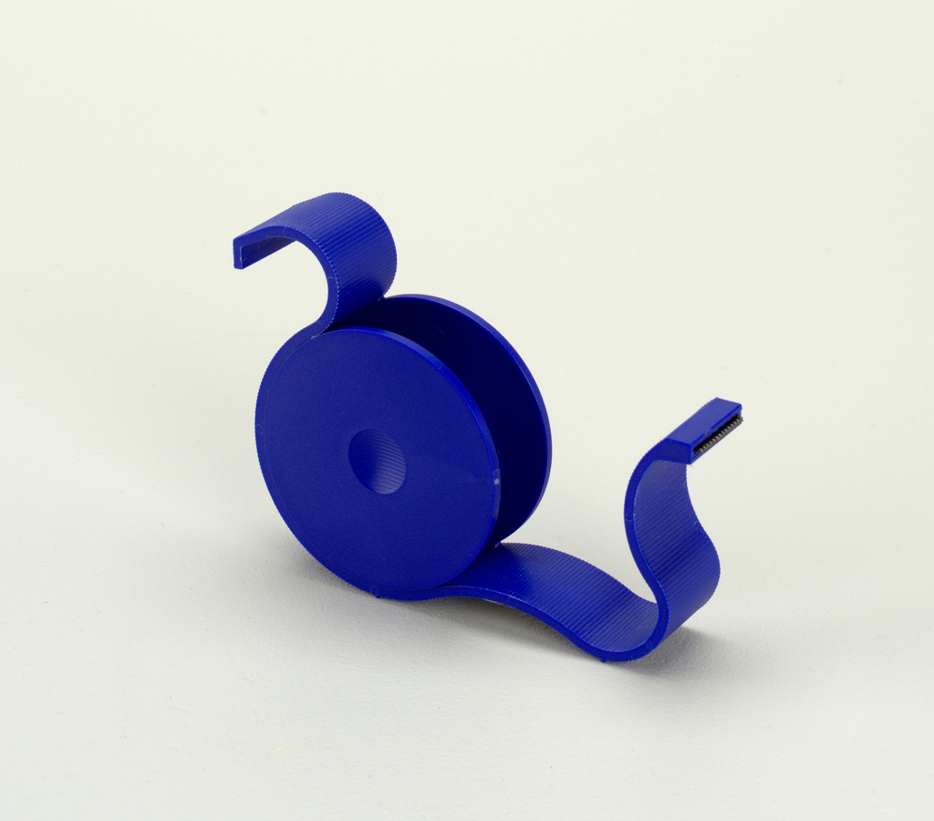 This is a tape dispenser. It was designed by Ayse Birsel and manufactured by Knoll Group. It is dated 1994 and we acquired it in 1995. Its medium is polystyrene. It is a part of the Product Design and Decorative Arts department.