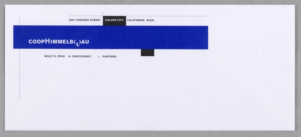 Envelope, Coop Himmelblau Architects; Designed by April Greiman (American, b. 1948); USA; offset lithograph on paper; 10.5 x 24.1 cm (4 1/8 x 9 1/2 in.); Gift of April Greiman; 1995-167-10