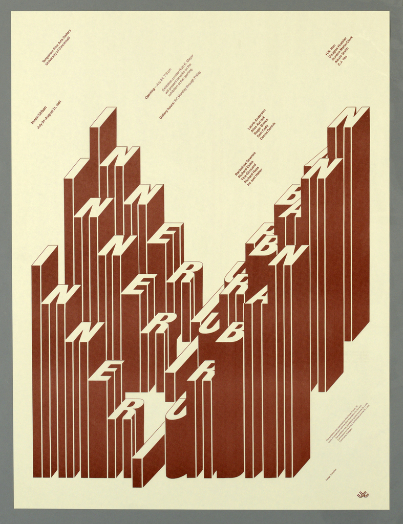 Poster, Inner/Urban; Designed by Chuck Byrne, Michael Overton (American, b. 1957); USA; offset lithograph on paper; 53.5 × 40.4 cm (21 1/16 × 15 7/8 in.); Gift of Chuck Byrne; 1995-63-4