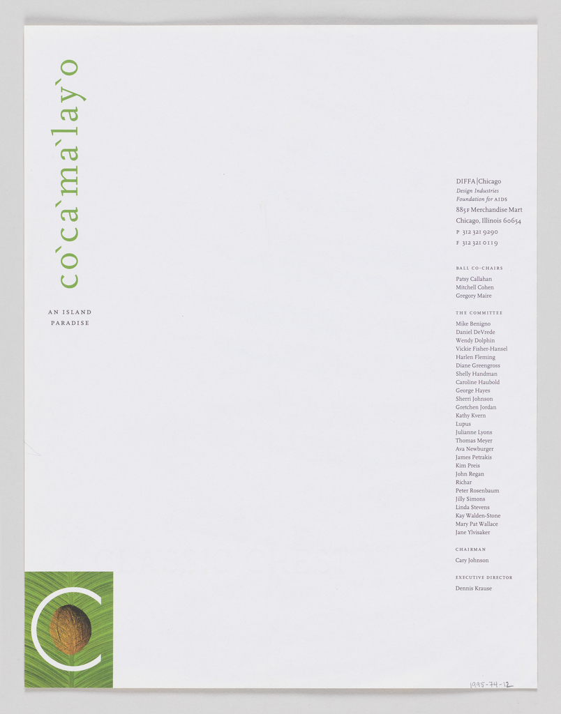 This is a Stationery. It is dated 1994 and we acquired it in 1995. Its medium is lithograph on paper. It is a part of the Drawings, Prints, and Graphic Design department.