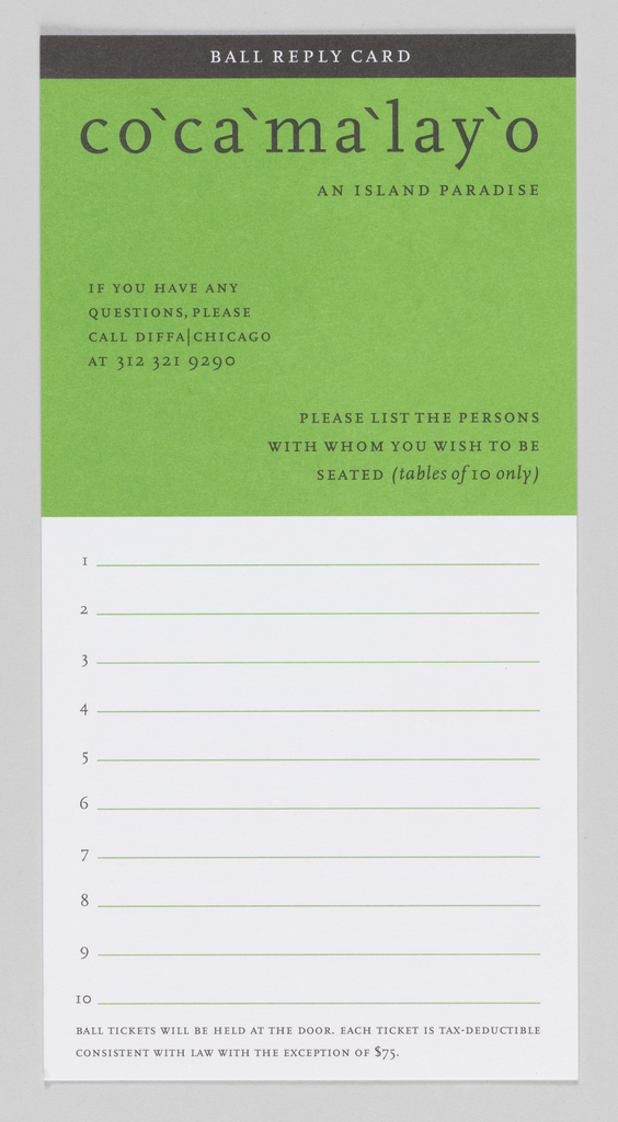 Stationery, Cocamalayo; USA; lithograph on paper; Gift of Jilly Simons; 1995-74-8