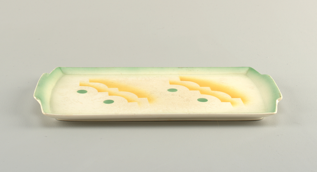 Cake Plate (Germany); Manufactured by Villeroy and Boch (Germany); glazed earthenware; height 2.4, width 32.3, depth 17.8 centimeters; Gift of Victor Wiener; 1996-18-47