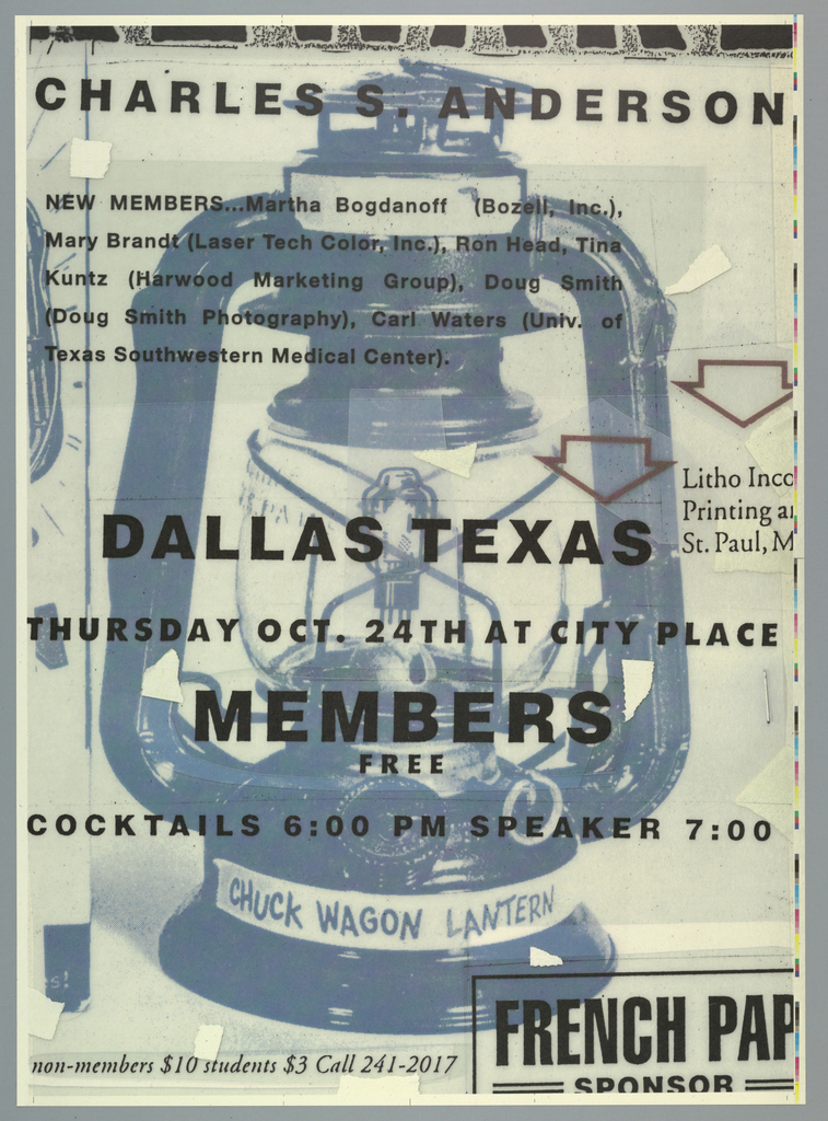 <ref name=CH>{{cite web |url=https://www-6.collection.cooperhewitt.org/objects/18653453/ |title=Poster, Charles S. Anderson, Dallas, Texas |author=Cooper Hewitt, Smithsonian Design Museum |accessdate=20 December 2025 |publisher=Smithsonian Institution}}</ref>