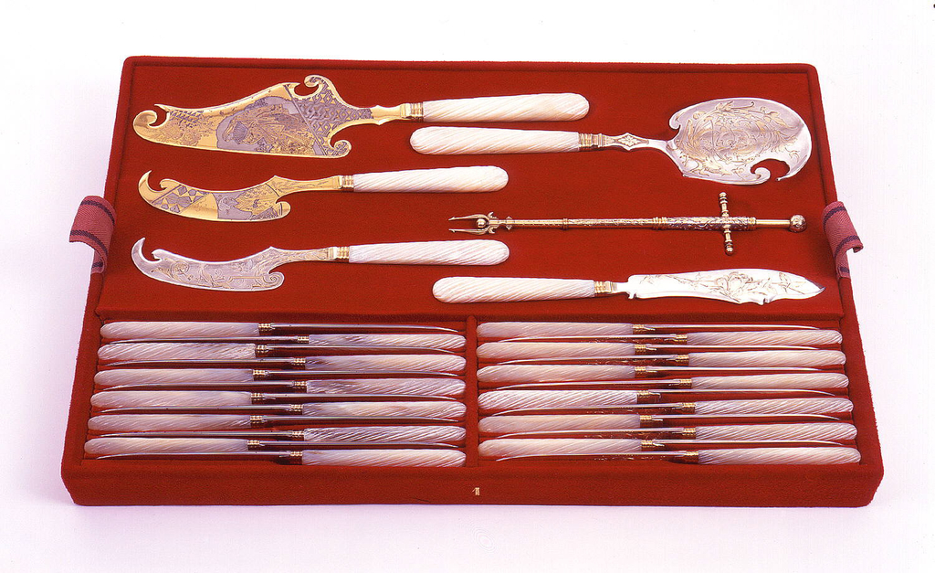 <ref name=CH>{{cite web |url=https://www-6.collection.cooperhewitt.org/objects/18653911/ |title=Fruit Knife with Mother-of-Pearl Handle Knife |author=Cooper Hewitt, Smithsonian Design Museum |accessdate=19 December 2025 |publisher=Smithsonian Institution}}</ref>