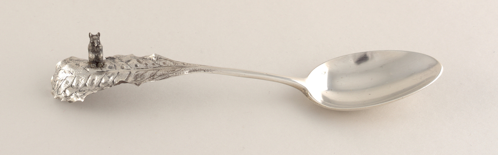 Dessert Spoon with Mouse on Handle Spoon; Manufactured by Charles Victor Gibert (French); France; silver; L x W x D: 18.1 × 3.8 × 3 cm (7 1/8 × 1 1/2 × 1 3/16 in.); Museum purchase from Smithsonian Institution Collections Acquisition Program, Decorative Arts Association Acquisition, and Sarah Cooper-Hewitt Funds; 1996-56-9