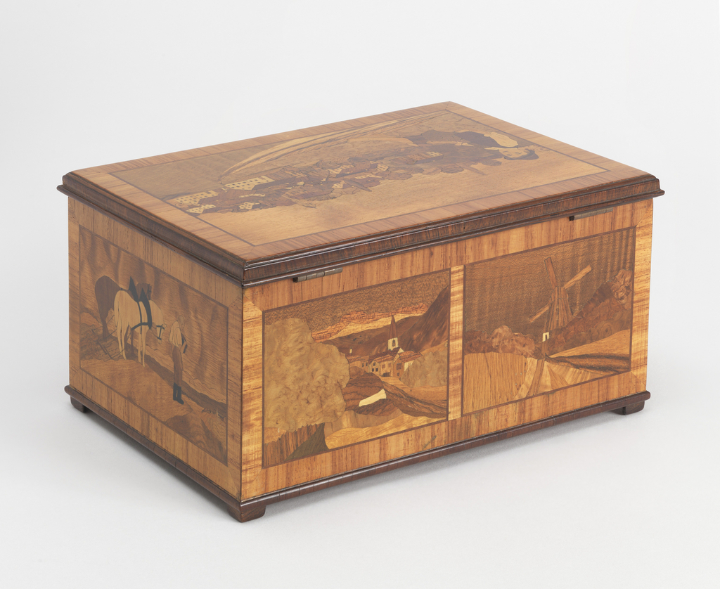 Box (USA); Engelbert Rehle; various woods, metal; H x W x D: 11.2 x 22.4 x 15.4 cm (4 7/16 x 8 13/16 x 6 1/16 in.); Gift in memory of Engelbert Rehle from his wife, Anna Rehle, and daughter, Sister Mary Perpetua Rehle, S.C.C.; 1996-66-1