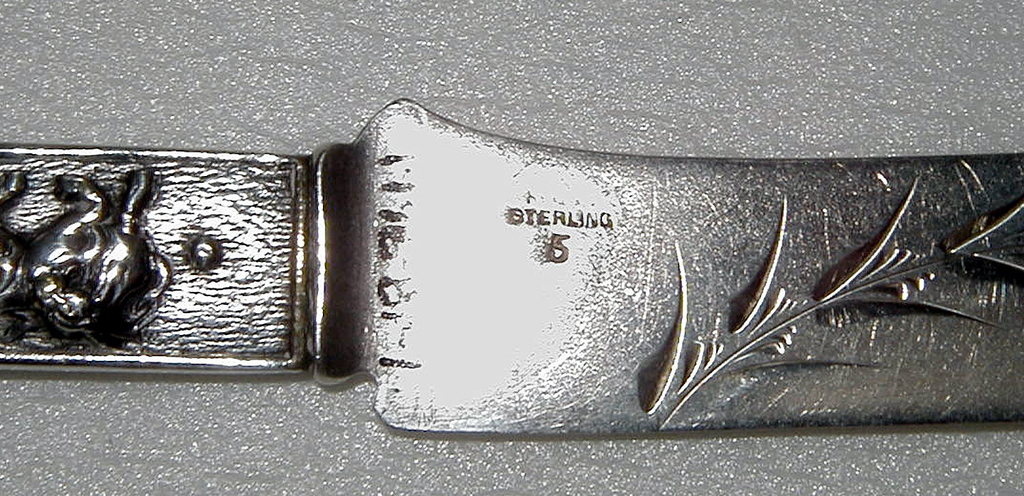 On base of blade, stamped: [1] partial illegible maker's mark [2] STERLING [3] 5