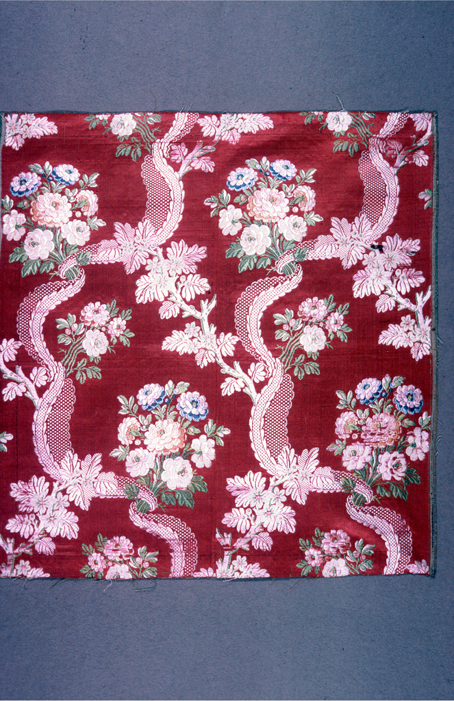 This is a Fragment. It is dated 19th century and we acquired it in 1998. Its medium is silk and its technique is 8-harness satin weave with weft floar patterning and discontinuous supplementary weft patterning (brocade). It is a part of the Textiles department.