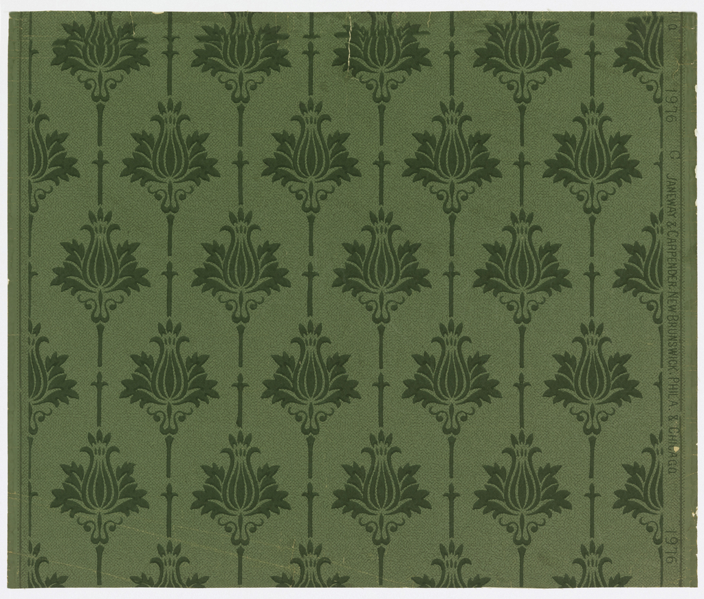 This is a Sidewall. It was manufactured by Janeway & Carpender. It is dated 1910–1920 and we acquired it in 1998. Its medium is machine-printed paper. It is a part of the Wallcoverings department.