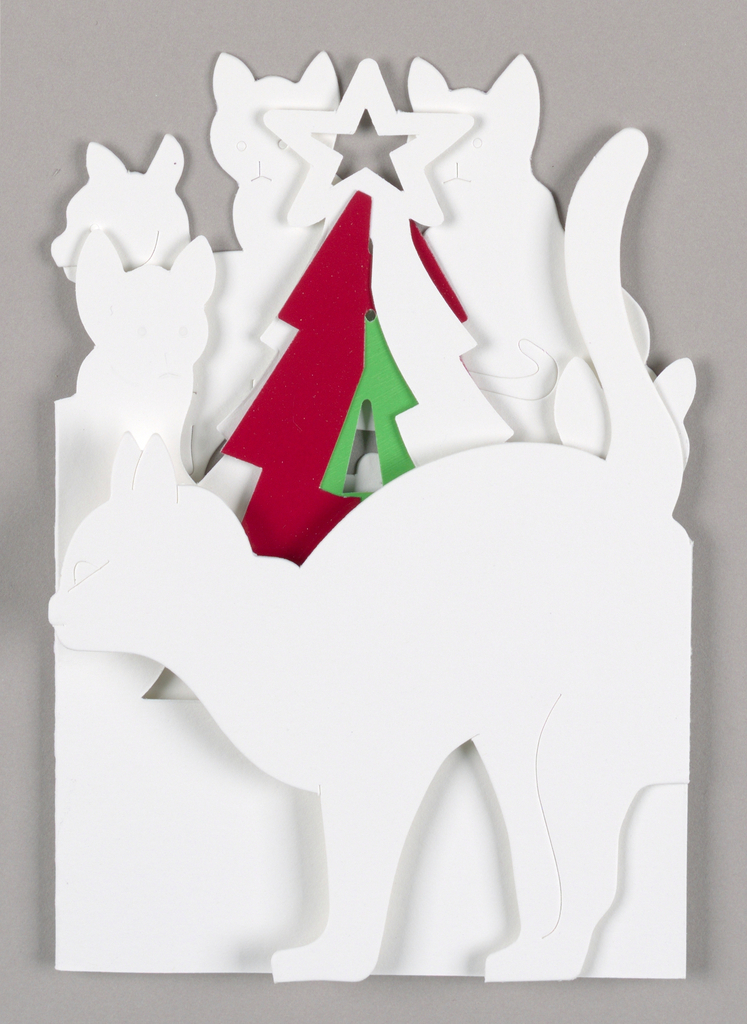 Greeting Card, Cats Around the Tree; Designed by Ted Naos (American, b. Greece, 1939); die-cut heavy white paper; Gift of Ted Naos; 1998-17-13