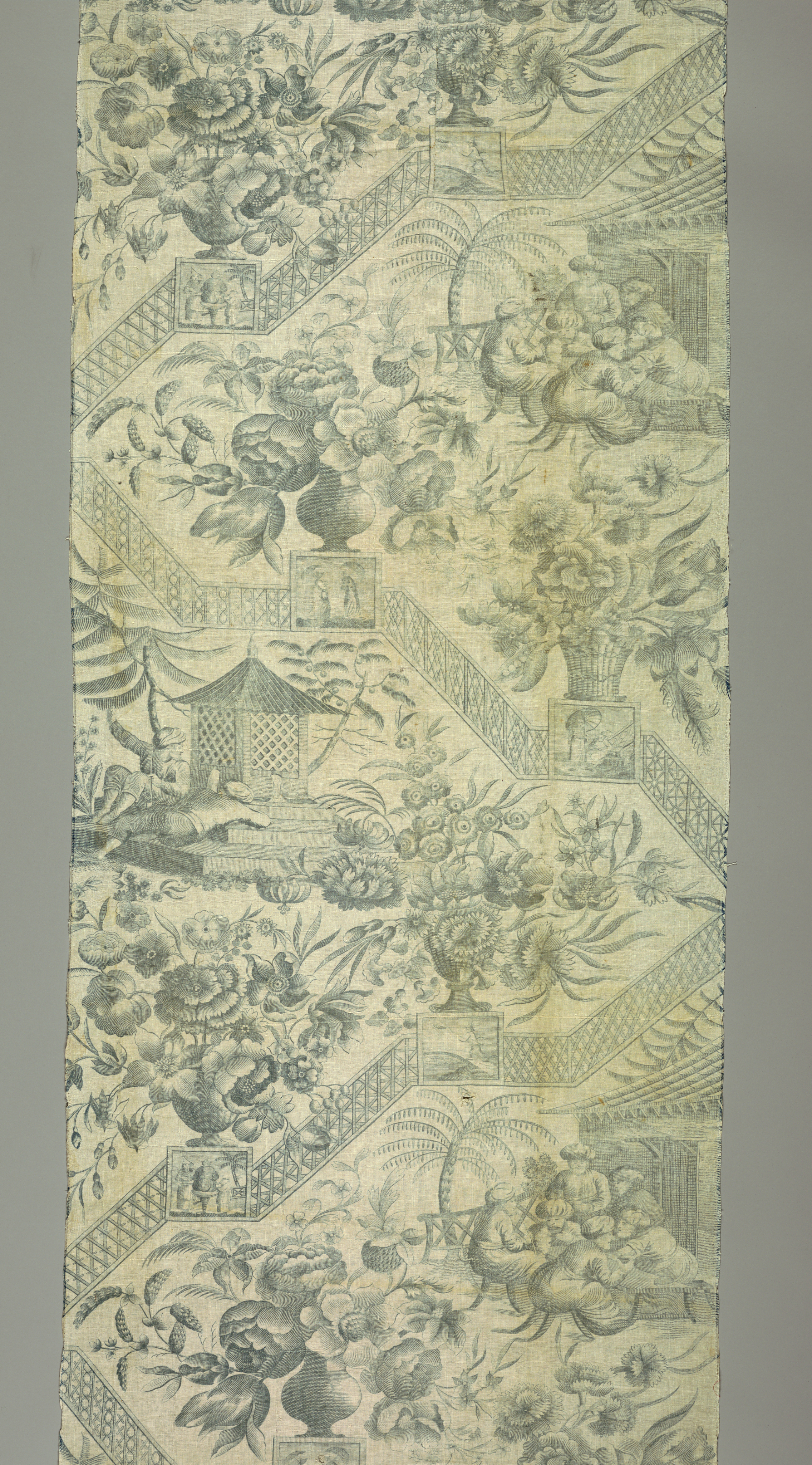 This is a Textile. It is dated 1775–95 and we acquired it in 1995. Its medium is cotton and its technique is printed by engraved plate on plain weave. It is a part of the Textiles department.