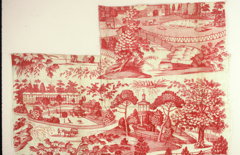 This is a Fragments. It was manufactured by Favre Petitpierre. It is dated 1802–1818 and we acquired it in 1995. Its medium is cotton and its technique is printed by engraved cooper plate on plain weave. It is a part of the Textiles department.