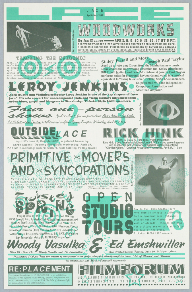 <ref name=CH>{{cite web |url=https://www-6.collection.cooperhewitt.org/objects/18667003/ |title=Newsletter, LACE Newsletter- April/May 1988 |author=Cooper Hewitt, Smithsonian Design Museum |accessdate=19 December 2025 |publisher=Smithsonian Institution}}</ref>