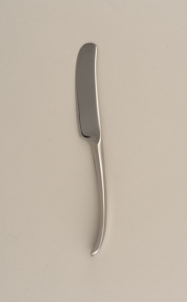 This is a Child's knife. It was manufactured by Georg Jensen Sølvsmedie and distributed by Royal Copenhagen Porcelain Manufactory. It is dated 1997 and we acquired it in 1998. Its medium is stainless steel. It is a part of the Product Design and Decorative Arts department.
