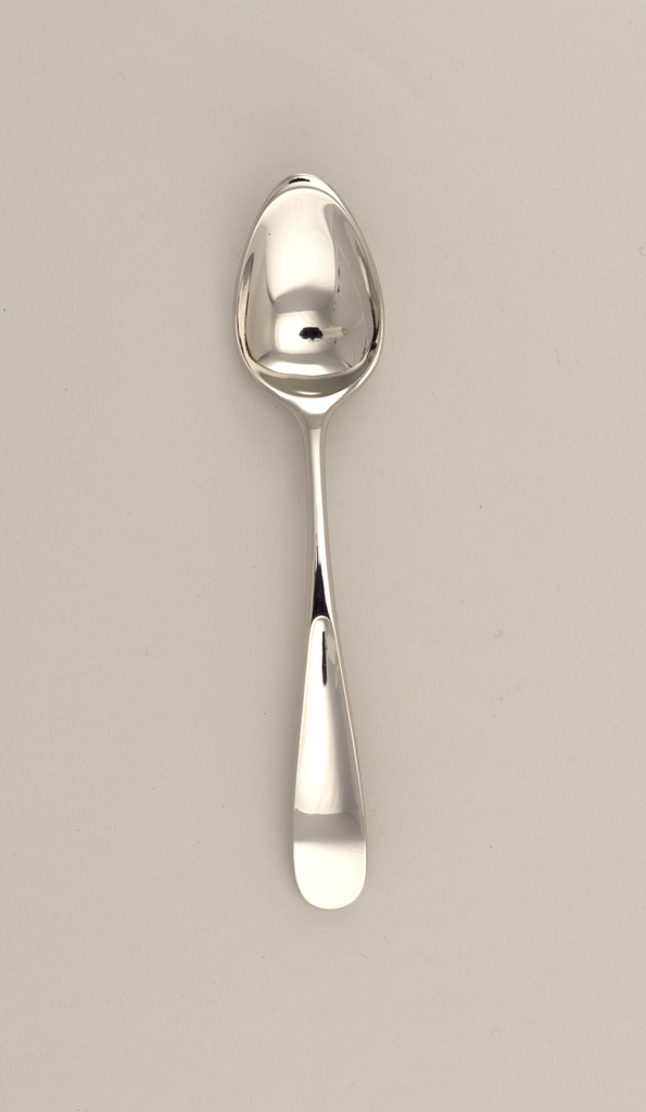 This is a spoon. It was manufactured by Georg Jensen Sølvsmedie and distributed by Royal Copenhagen Porcelain Manufactory. It is dated 1997 and we acquired it in 1998. Its medium is stainless steel. It is a part of the Product Design and Decorative Arts department.