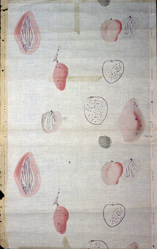 Printed in left selvedge: Copyright by Katzenbach & Warren, Inc.; printed in right selvedge: Mangoes Designed by Lanette.