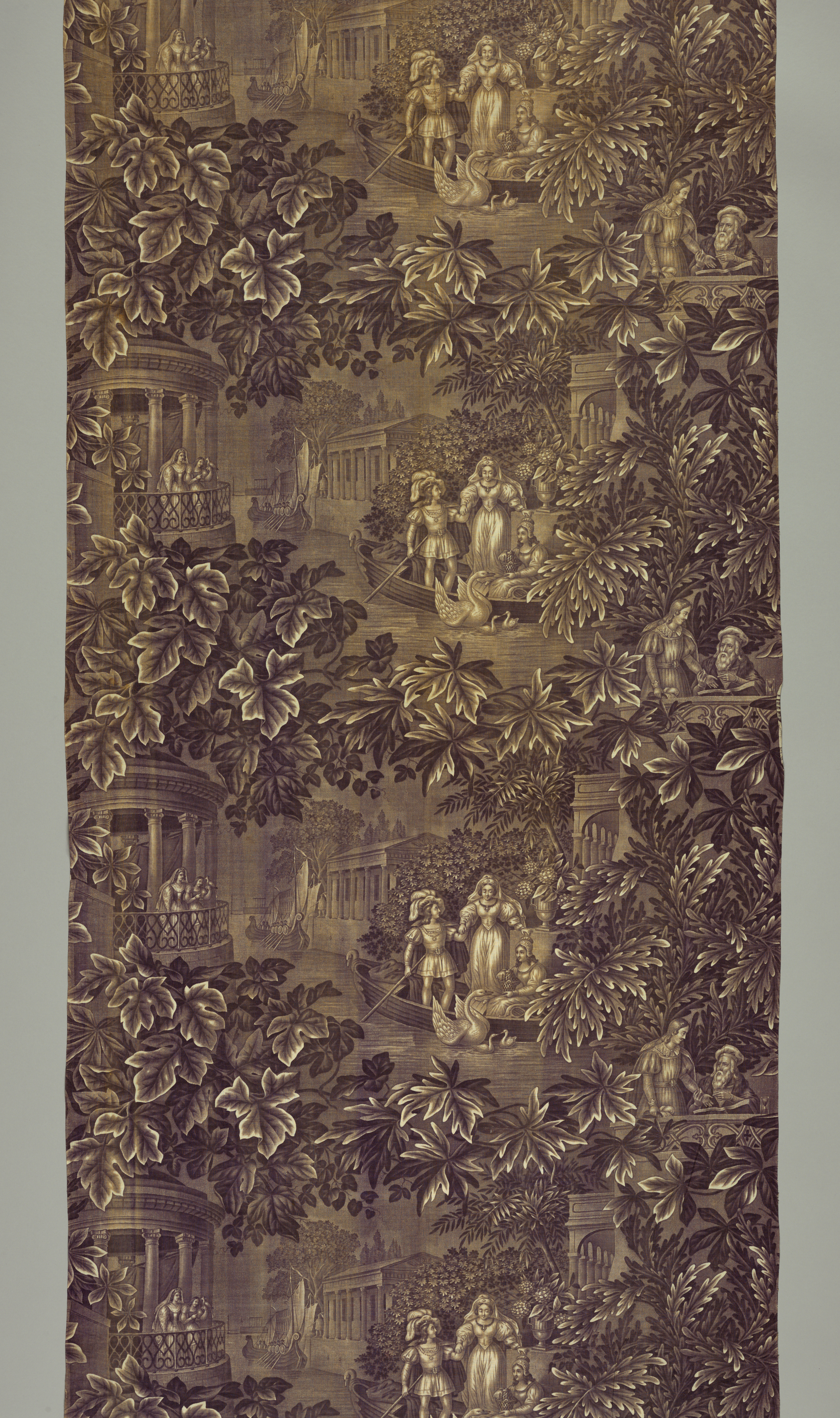 This is a Textile. It is dated ca. 1840 and we acquired it in 1995. Its medium is cotton and its technique is printed by engraved copper plate on plain weave. It is a part of the Textiles department.