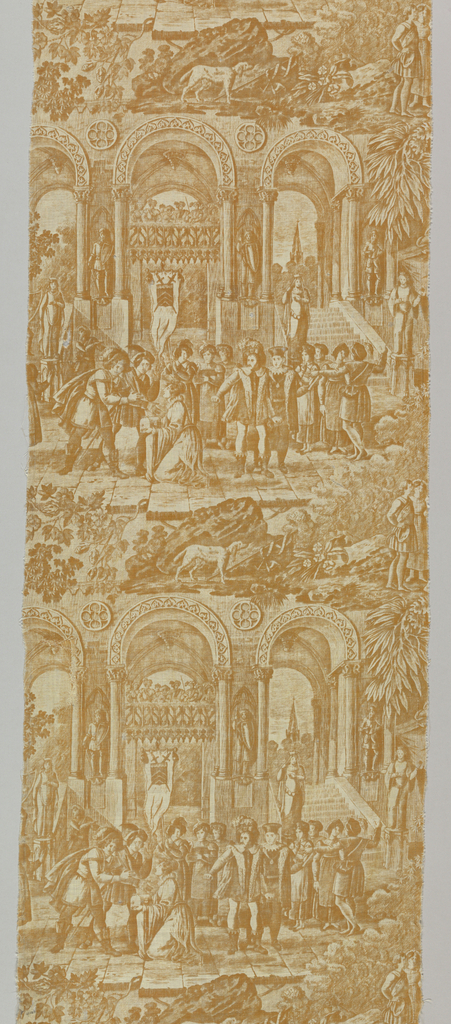 Textile (France); cotton; Warp: 238 cm (83 1/2in.). Weft: 40.5cm (16 in.) left selvedge only. Height of repeat: 47.5cm; Bequest of Elinor Merrell; 1995-50-201