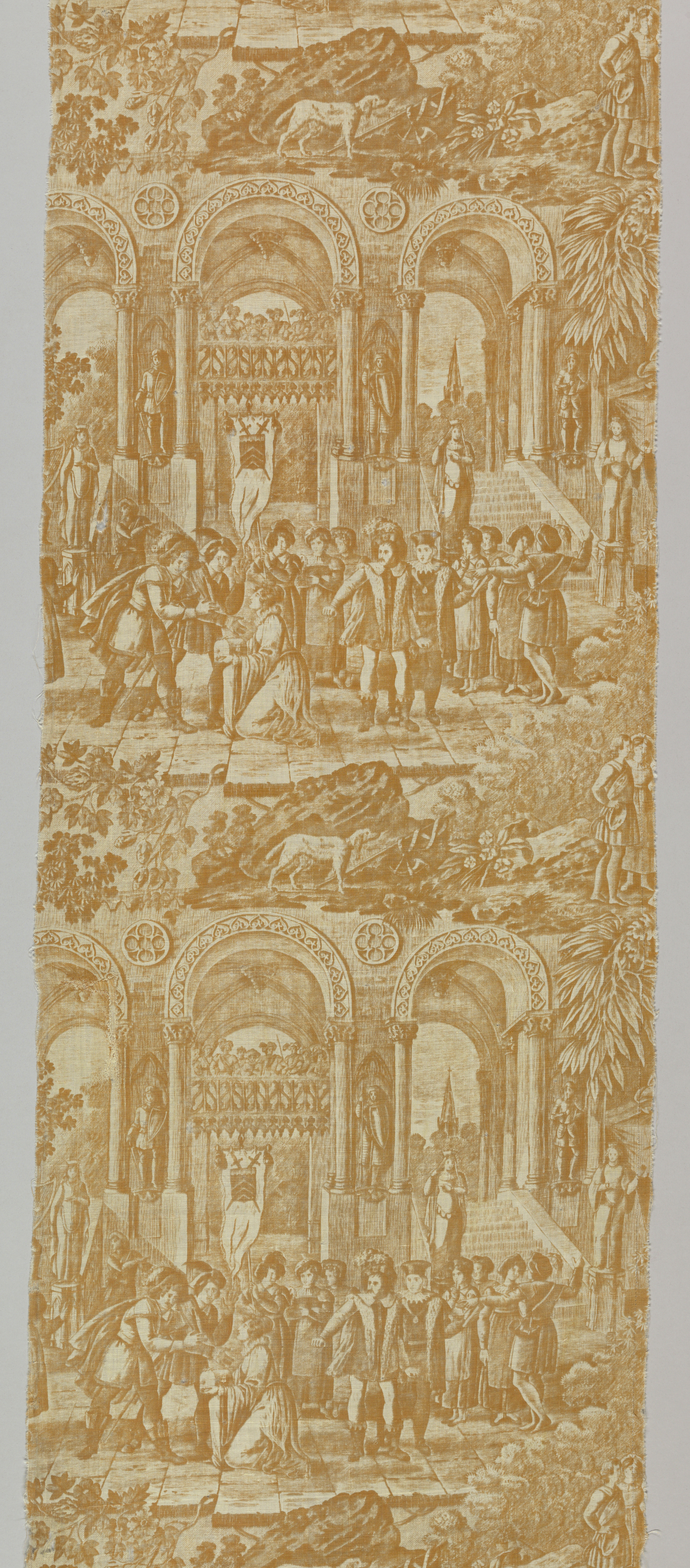 This is a Textile. It is dated early 19th century and we acquired it in 1995. Its medium is cotton and its technique is printed by engraved roller on cotton plain weave. It is a part of the Textiles department.