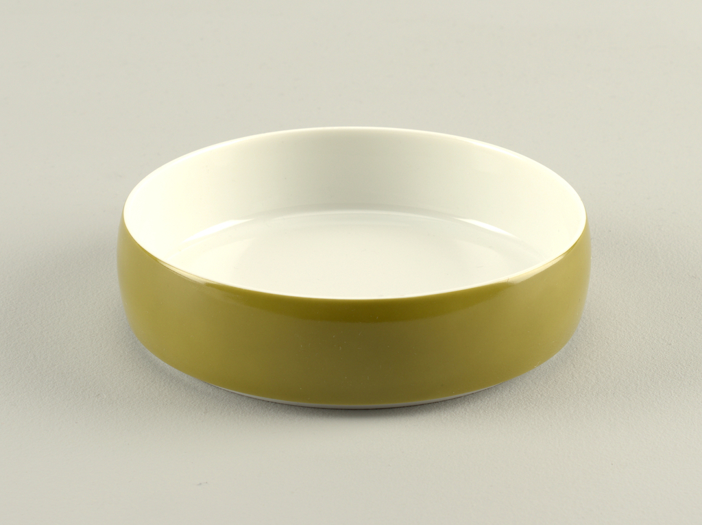 This is a Bowl. It was designed by Gerald Gulotta. It is dated 1971–73 and we acquired it in 1999. Its medium is glazed porcelain. It is a part of the Product Design and Decorative Arts department.