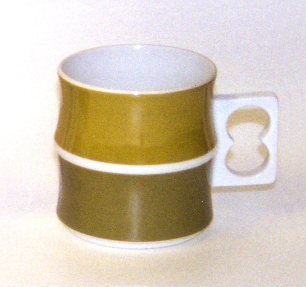 This is a cup. It was designed by Gerald Gulotta. It is dated designed 1970, marketed 1971–73 and we acquired it in 1999. Its medium is glazed porcelain. It is a part of the Product Design and Decorative Arts department.