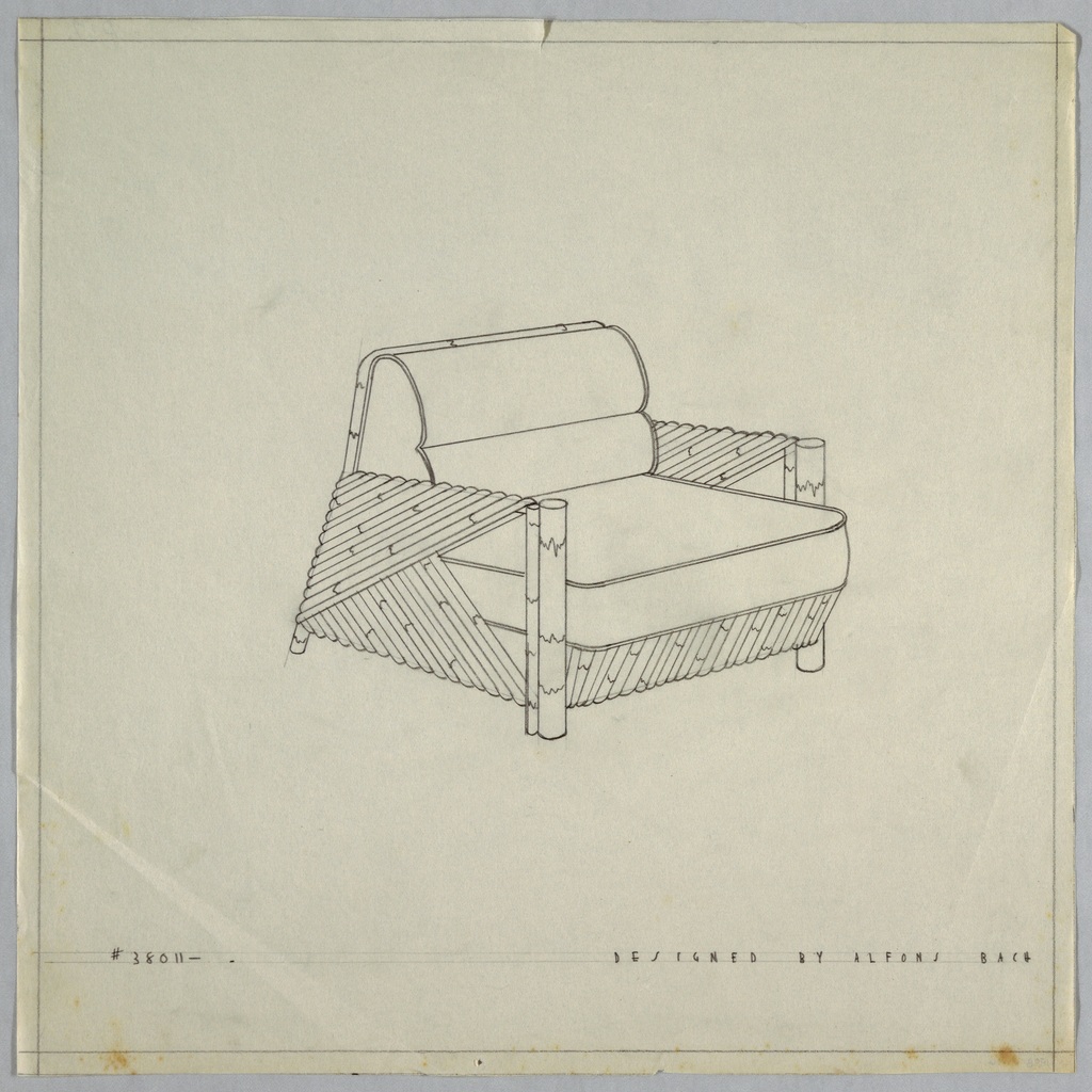 In graphite, lower left: #38011--; lower right: DESIGNED BY ALFONS BACH
