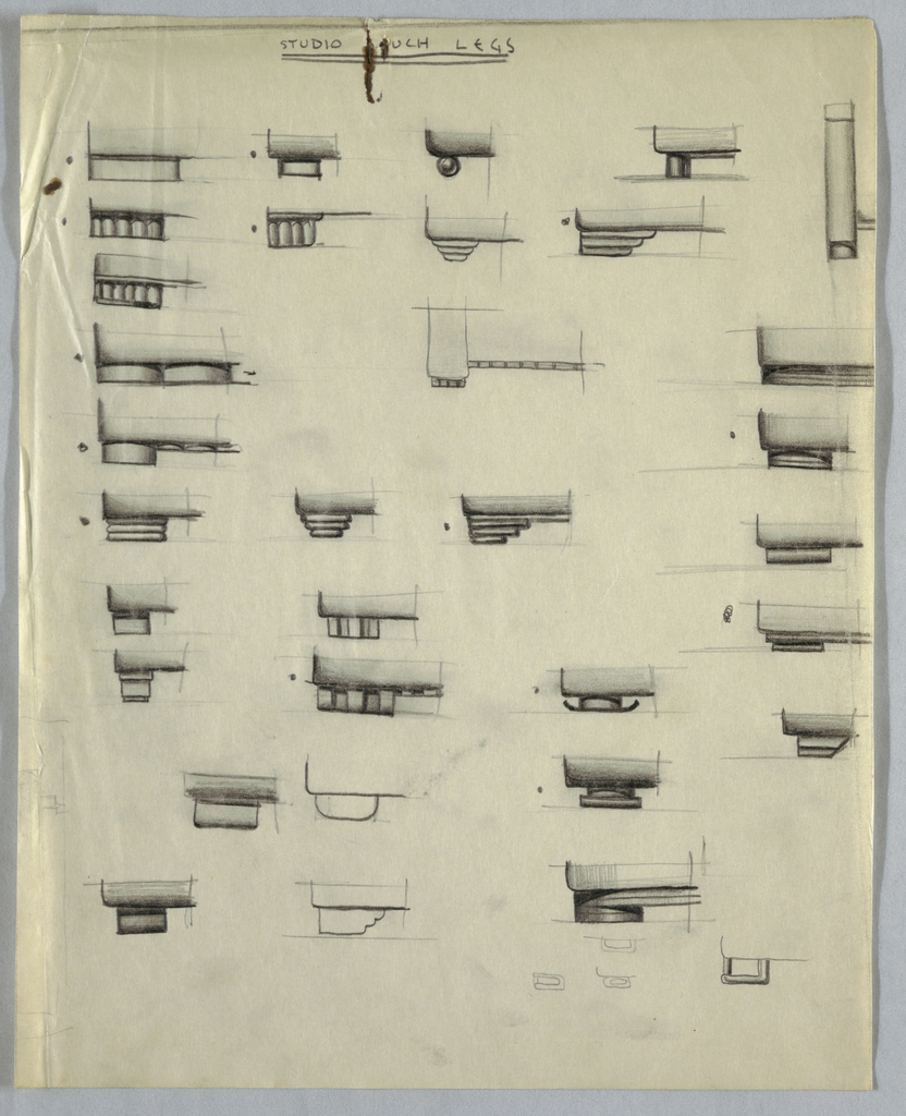 Drawing, Leg Studies for Studio Couches; Designed by Alfons Bach (American, b. Germany, 1904–1999); USA; graphite on cream tracing paper; 30.5 × 24.3 cm (12 in. × 9 9/16 in.); Gift of Alfons and Anita S. Bach; 1998-71-151