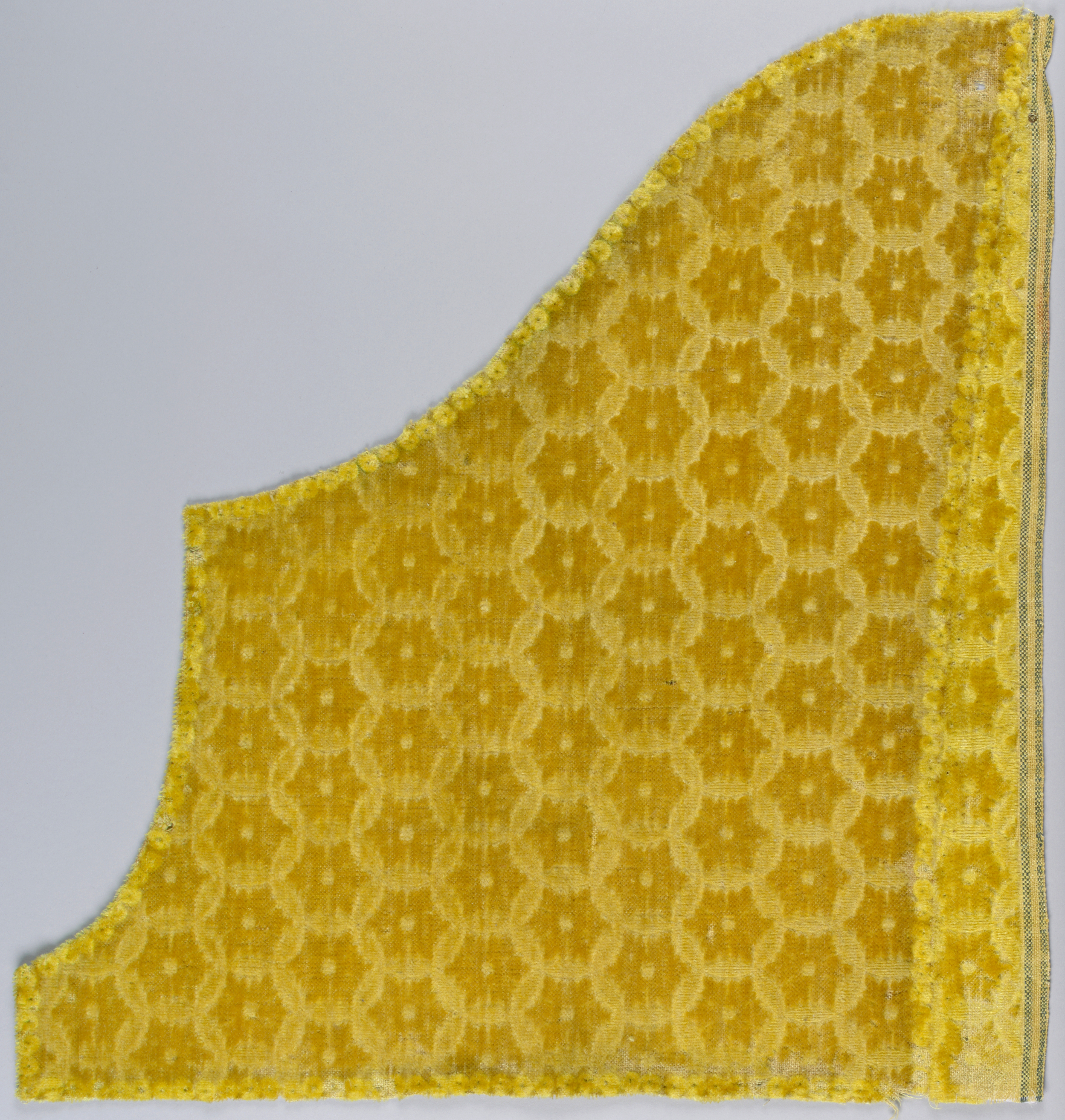 This is a Textile. It is dated early 19th century and we acquired it in 1995. Its medium is wool and its technique is printed by heated roller on velvet (baste fiber plain weave with wool supplementary weft). It is a part of the Textiles department.