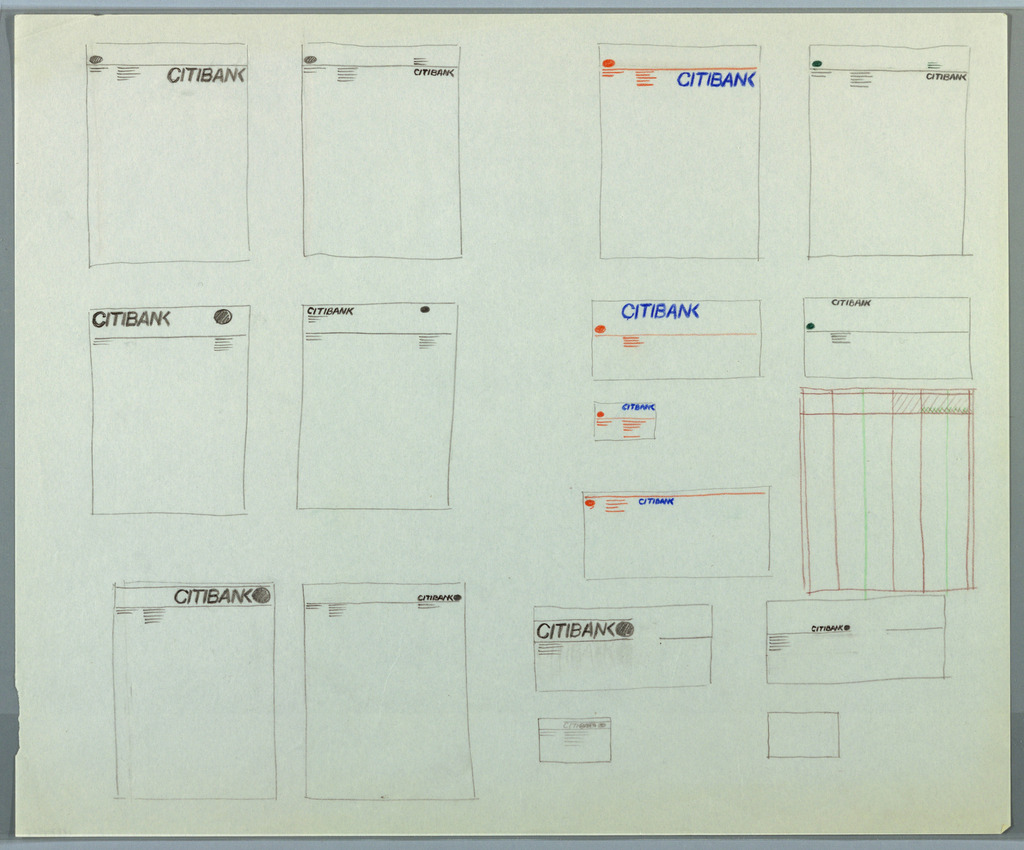 <ref name=CH>{{cite web |url=https://www-6.collection.cooperhewitt.org/objects/18673037/ |title=Drawing, Design for Citibank/Citicorp Stationery |author=Cooper Hewitt, Smithsonian Design Museum |accessdate=20 December 2025 |publisher=Smithsonian Institution}}</ref>
