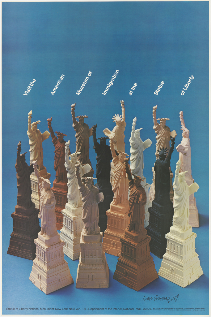 Poster, Visit the American Museum of Immigration at the Statue of Liberty; Designed by Ivan Chermayeff (American, b. England, 1932 - 2017), Chermayeff & Geismar Associates (United States); USA; offset lithograph on white wove paper; 107.1 x 68.6 cm (42 1/6 x 27 in.); Gift of Ken Friedman; 1997-19-246