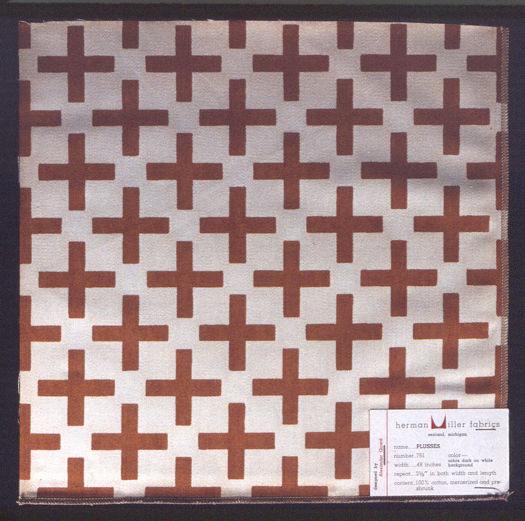 Sample, Plusses; Designed by Alexander Hayden Girard (American, 1907–1993); Produced by American Art Textile Printing Company, Inc.; mercerized cotton; 30.5 x 30.5 cm (12 x 12 in. ); Gift of Alexander H. Girard; 1969-165-70