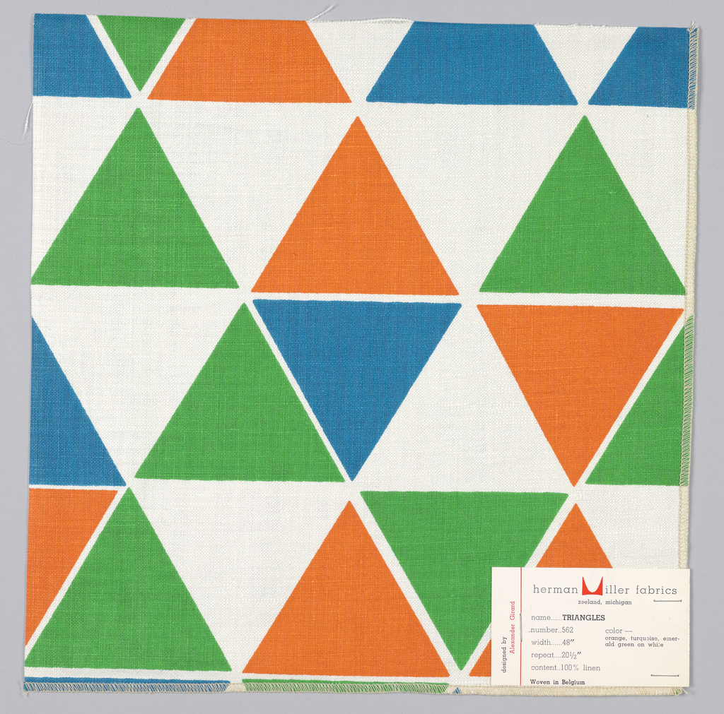 Sample, Triangles; Designed by Alexander Hayden Girard (American, 1907–1993); Produced by Herman Miller Furniture Company (United States); USA; 100% linen; 30 x 30.5 cm (11 13/16 x 12 in. ); Gift of Alexander H. Girard; 1969-165-112