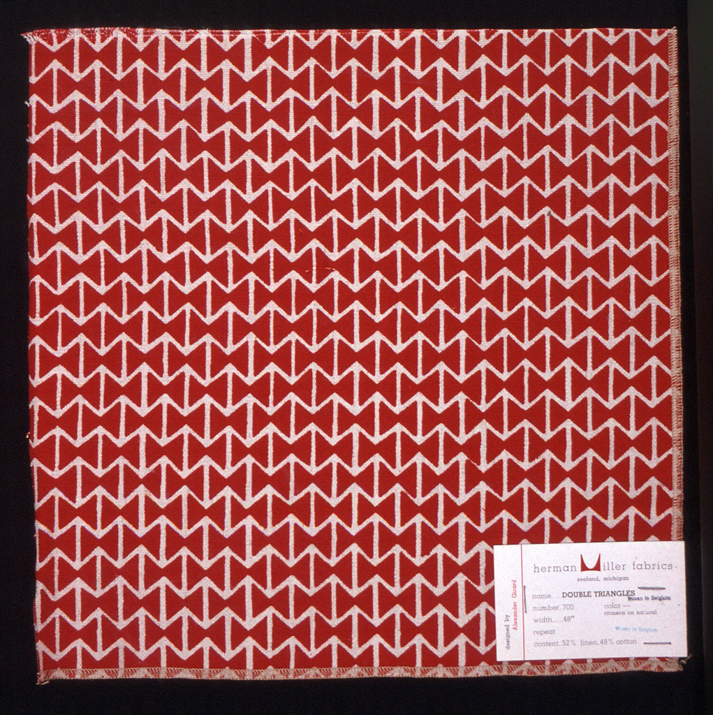 Sample, Double Triangles; Designed by Alexander Hayden Girard (American, 1907–1993); Produced by Herman Miller Furniture Company (United States); Manufactured by American Art Textile Printing Company, Inc.; Belgium; 52% linen, 48% cotton; Warp x Weft: 30.5 x 31 cm (12 x 12 3/16 in.); Gift of Alexander H. Girard; 1969-165-159