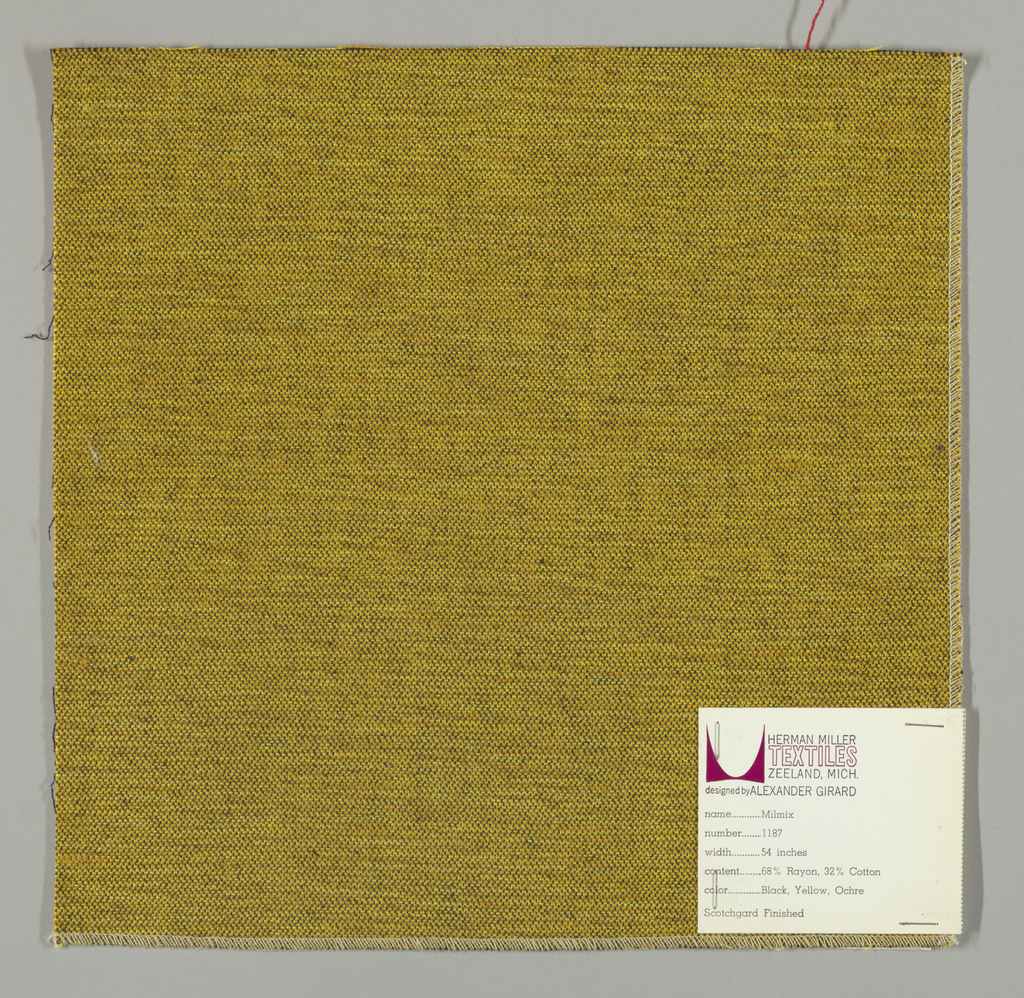 Sample, Milmix; Designed by Alexander Hayden Girard (American, 1907–1993); Produced by Herman Miller Furniture Company (United States); USA; rayon (68%) and cotton (32%); Warp x Weft: 30.5 x 30.5 cm (12 x 12 in.); Gift of Alexander H. Girard; 1969-165-687