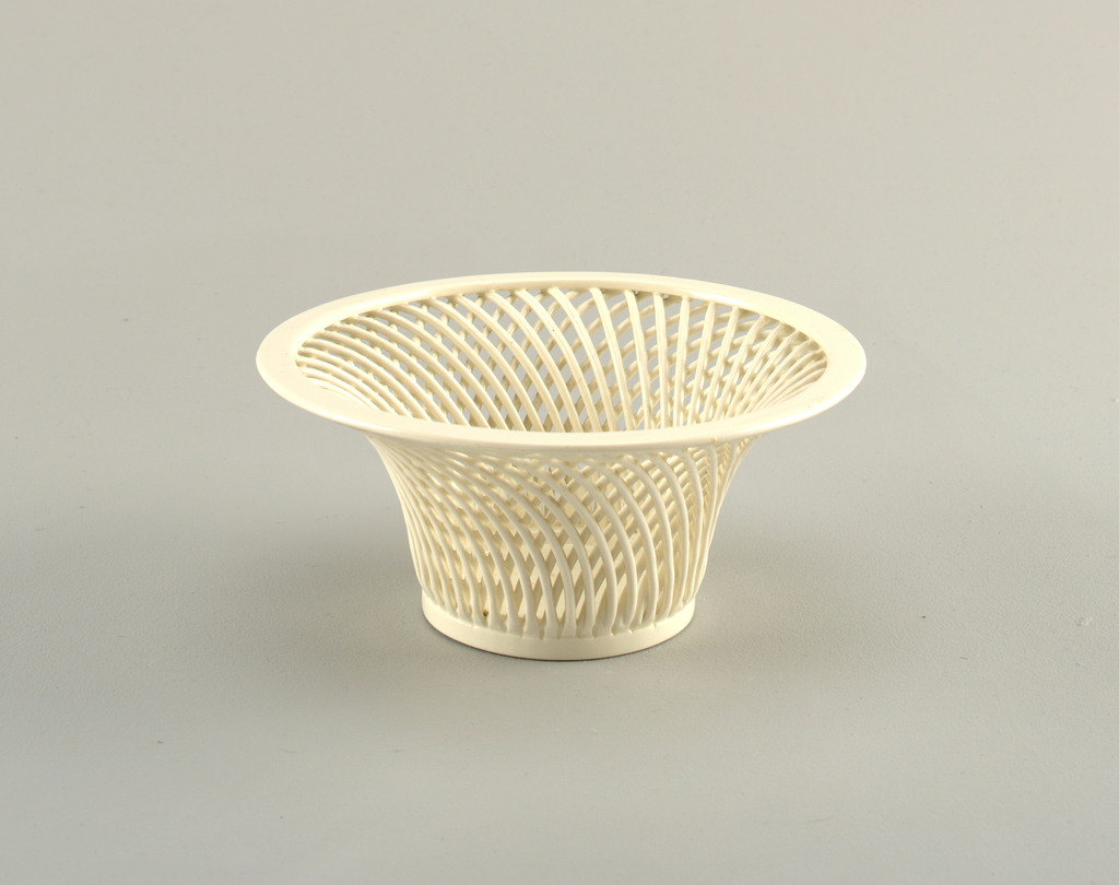 This is a basket. It was designed by Adolf Behrmann and manufactured by Max Roesler Factory. It is dated ca. 1915 and we acquired it in 1999. Its medium is glazed earthenware. It is a part of the Product Design and Decorative Arts department.