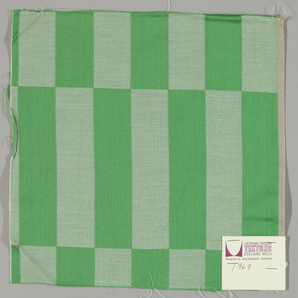 This is a Sample. It was designed by Alexander Hayden Girard and produced by Herman Miller Furniture Company. It is dated 1965 and we acquired it in 1969. Its technique is damask. It is a part of the Textiles department.