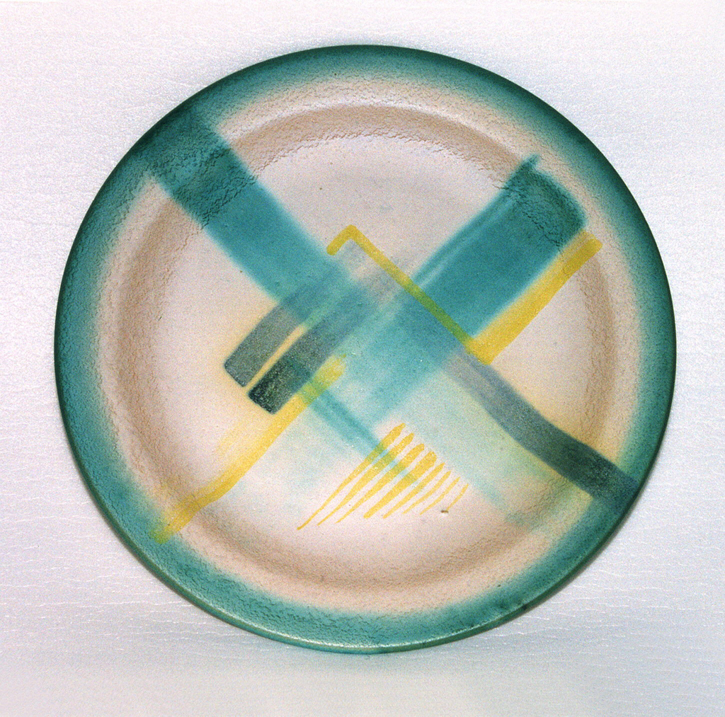 This is a plate. It was manufactured by Carstens-Neuhaldensleben. It is dated ca. 1930 and we acquired it in 1999. Its medium is glazed earthenware. It is a part of the Product Design and Decorative Arts department.