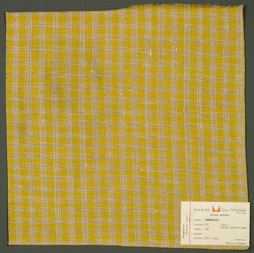 This is a Sample. It was designed by Alexander Hayden Girard and produced by Herman Miller Furniture Company. It is dated 1957 and we acquired it in 1969. Its medium is linen and its technique is plain weave. It is a part of the Textiles department.