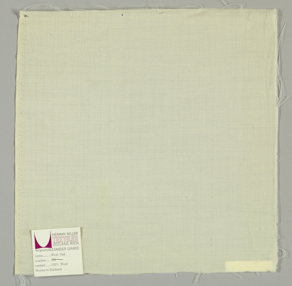 Sample, Wool Veil; Designed by Alexander Hayden Girard (American, 1907–1993); Produced by Herman Miller Furniture Company (United States); wool; Warp x Weft: 30.5 x 30.5 cm (12 x 12 in.); Gift of Alexander H. Girard; 1969-165-979