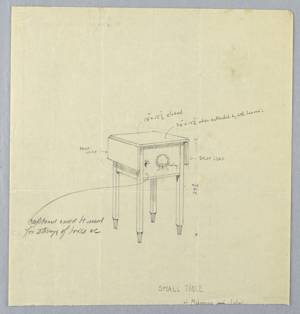 Drawing, Design for Small Drop Leaf Table with Mahogany Cupboard and Inlay; Designed by A.N. Davenport Co.; Gift of The Lake St. Louis Historical Society; 2000-69-499