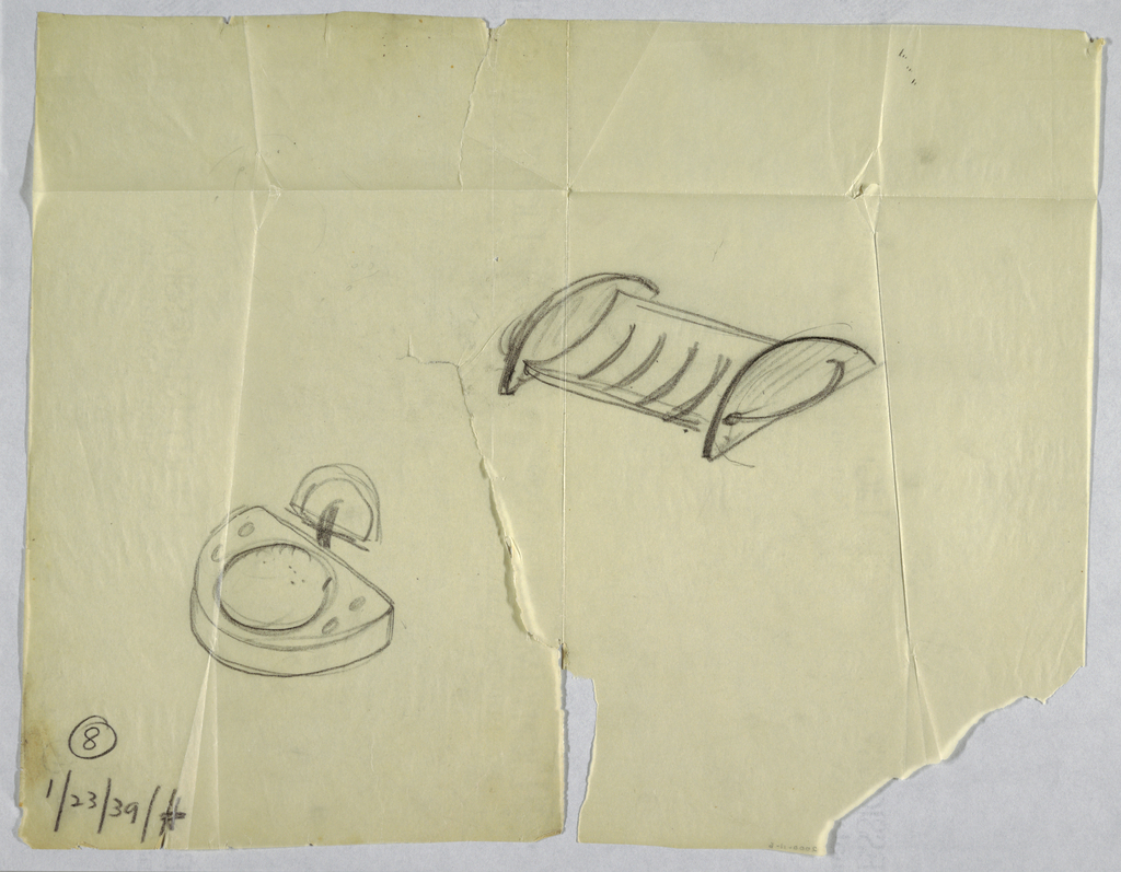 Drawing, Two Sketches of Wall Mounted Soap Dishes; Designed by Henry Dreyfuss (American, 1904–1972); USA; graphite on tracing paper; 33.3 x 42.8 cm (13 1/8 x 16 7/8 in. ); Gift of Industrial Designers Society of America; 2000-11-6