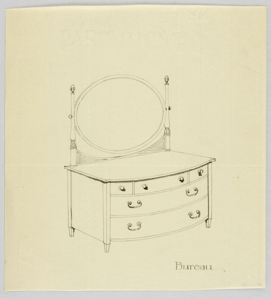 <ref name=CH>{{cite web |url=https://www-6.collection.cooperhewitt.org/objects/18682153/ |title=Drawing, Design for Bureau |author=Cooper Hewitt, Smithsonian Design Museum |accessdate=19 December 2025 |publisher=Smithsonian Institution}}</ref>
