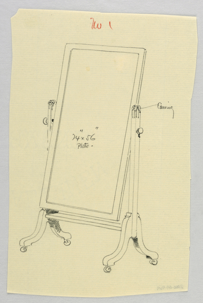 Drawing, Design for Mirror & Piano Bench; Designed by A.N. Davenport Co.; Gift of The Lake St. Louis Historical Society; 2000-69-969