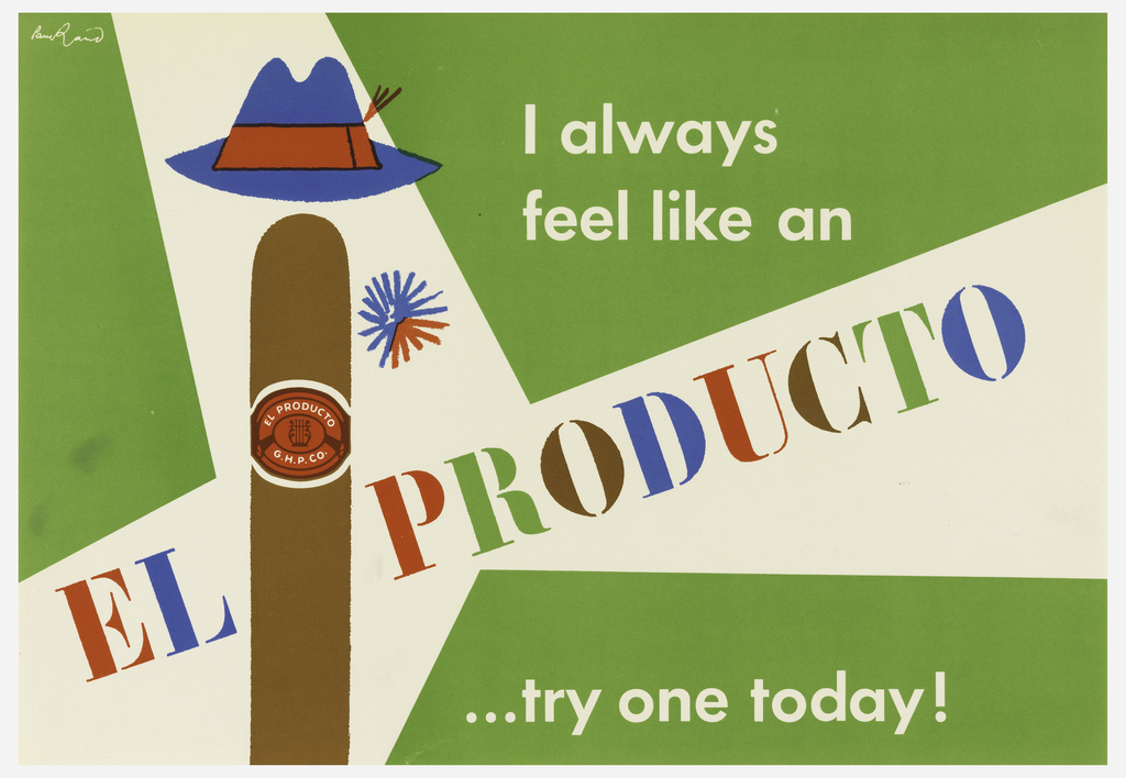 Label, Advertisement for El Producto; Designed by Paul Rand (American, 1914–1996); USA; offset lithograph on paper; 28.6 x 41.3 cm (11 1/4 x 16 1/4 in. ); Gift of James Howard Fraser; 2000-68-6