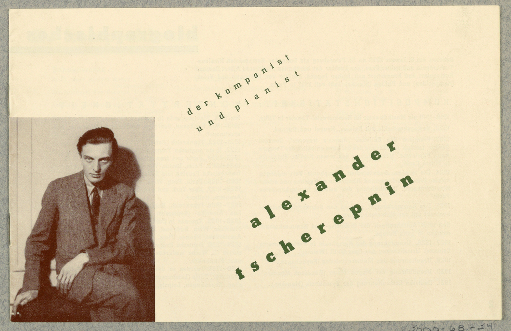 Brochure, Der Komponist und Pianist Alexander Tscherepnin [The Composer and Pianist Alexander Tscherepnin]; Published by Jahoda & Siegel (Austria); offset lithograph on white wove paper, mounted on grey-blue wove paper; Gift of James Howard Fraser; 2000-68-24