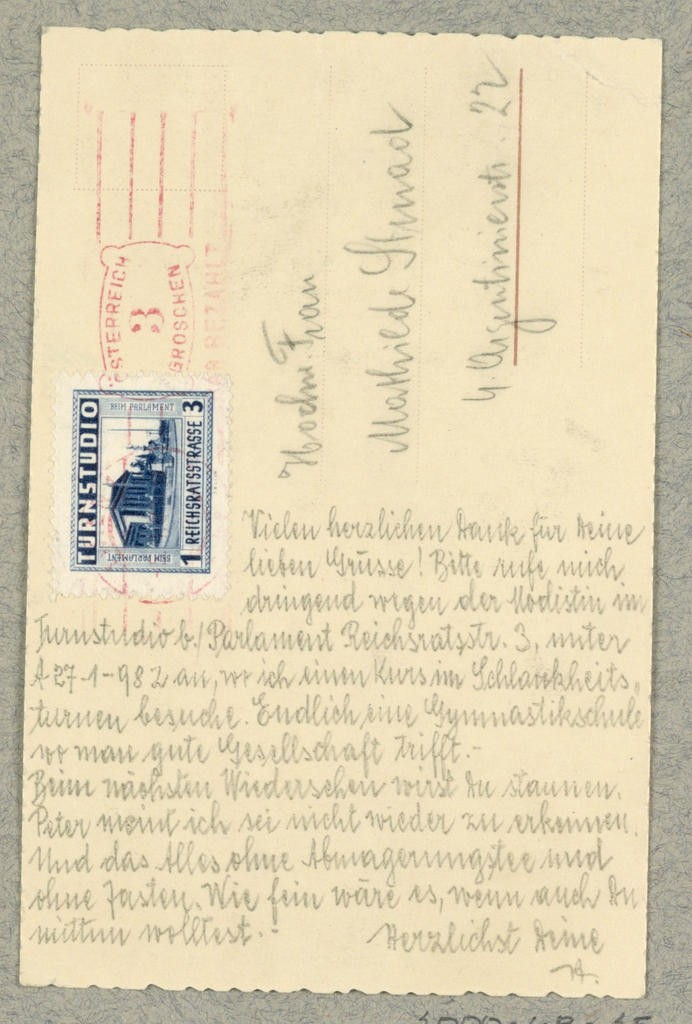 Postcard, Turn-Studio; Published by Jahoda & Siegel (Austria); graphite on white wove paper, mounted on grey-blue wove paper; Gift of James Howard Fraser; 2000-68-25